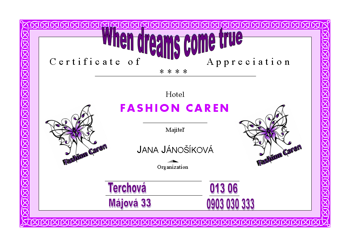 * Pokiaľ túžite po pravom oddychu, nadštandartných ubytovacích a relaxačných službách, tak ste tu správne. Práve Hotel Fashion Caren Vám ponúka pohodlný a luxusný pobyt v Terchovskej doline, ktorý uspokojí každého zákazníka. Je situovaný v krásnom prírodnom prostredí. Objavte s nami čarovnú atmosféru tohoto hotela a nechajte sa unášať nerušeným oddychom, ktorý Vám ponúkame.